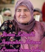 Дорогие друзья! От всей души поздравляю Руководителя Регионального общественного фонда им. Первого Президента Чеченской Республики, Героя России Ахмат-Хаджи Кадырова (ДАЛА Г1АЗОТ КЪОБАЛ ДОЙЛА ЦУЬНАН). Аймани Несиевна удостоена медали Уполномоченного по правам человека в Российской Федерации «Спешите делать добро». Торжественная церемония вручения награды прошла в понедельник…
